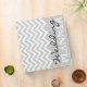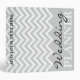 Personalized gray chevron zigzag pattern wedding planner binder. Custom planning book with personalizable name, zig zag pattern print and elegant cover. Can also be used as chic wedding scrapbook for bride and groom or classy keepsake photo album for newly weds. Cute personalized gift idea for marriage. Stylish script typography. Elegant Grey adn white zigzag stripe design.
