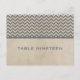 Modern with a vintage twist is this Chic Chevron Table Number Postcard. This design features a antique paper look background and a zigzag chevron pattern in dark gray. Easy to customize, simply add the appropriate table number(s). Click "Customize It" to find more personalization options.