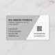 Flat business card for a professional photographer, where you can showcase your work in a striking photo collage with four vertical photos in a unique collage layout. Add your name and specialty or title or service on the cover in black letters against gray. Add your contact information on the back along with your QR code to help your clients access your social media and website. An eye-catching photo collage business card for a licensed photographer. Photo collage template business card personalized with QR code and your contact information.