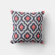 Gray Coral and Navy Ikat Moroccan Monogram Throw Pillow