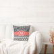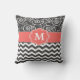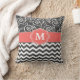 Show off your style in a fun way with this charcoal gray and coral scroll and chevron monogram pillow.