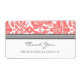Elegant Wedding thank you labels in stylish charcoal grey, peach orange pink, and white vintage damask floral pattern, the perfect addition to your wedding, available in many matching wedding products. Perfect for wedding favors or as wedding wine bottle labels.
