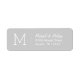 Custom designed return address labels with sleek simple typography on a solid color background. Personalize it with your monogram initial, name and address or any other custom text. Click Customize It to change text fonts and colors, resize or move text around to create a unique one of a kind label design. Perfect for mailing wedding invitations or any other personalized stationery!