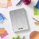 I was super excited when I got my cover in. It is attached by a magnet across the edge. I don’t think it will be very protective but it is very cute. I’m going to keep my iPad in a sleeve and use this face cover while I have it out. It folds to create a tilt for better viewing and to keep the iPad at a slight angle for typing. The colors are bright and it is fun. I’ve really enjoyed it. The personalization looks like amazing. It is the same color as the picture and is the same brightness. Well done! Very nice.