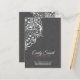 Elegant gray monochromatic vintage floral damasks with ornate floral lace, business card template.