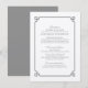 Simple and minimalist Deco Chic Wedding Information Card with a modern gray art deco ornamental border. This classic and elegant info card is easy to customize with your wedding details. Find more personalization options by clicking Customize.