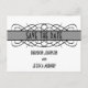 Elegant and classy Deco Flourish Save the Date Postcard featuring a fancy swirl gray border. This stylish design is the perfect choice for announcing a vintage deco chic inspired wedding. Easy to customize, simply add your wedding details in the text fields provided. Click "Customize It" to find more personalization options.