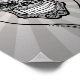 This elaborate DJ sugar skull design is decorated with intricate swirls and dot patterns. Headphones sit on top of the skull with two wires hanging below. Rays of light shine in every direction behind the skull which emanate from the center of the pattern. This aggressive Day of the Dead inspired image is perfect for musicians and music lovers.