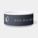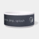 The design has a sleek 'drink, drip, splash' theme, symbolizing the joy of pet ownership. The background features a cool, modern gradient that ranges from gray to almost black. Whether they're eating their dog food or drinking water, this durable, high-quality dish makes a delightful pet accessory for any home. It's a thoughtful dog mom or dog dad gift for birthdays, holidays, or any special day.