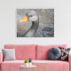 A beautiful close up photograph of a gray duck printed on a canvas.
