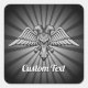 Two headed eagle, power symbol of byzantine emperors. Custom background color. Custom text.