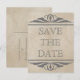 Stylish and chic Elegant Deco Save the Date Postcard featuring a pair of art deco swirl flourish borders in dark gray and a vintage textured look background in a soft beige. This save the date postcard has rustic charm while maintaining a lovely sophisticated flair. Absolutely perfect for an art deco 1920's vintage themed wedding. Easy to customize, simply add your wedding details in the text fields provided. Click "Customize It" to find more personalization options such as changing fonts or text colors.