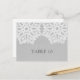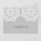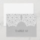 Simple and sophisticated Elegant Lace Wedding Table Number Postcard featuring a white lace doily motif on a light gray faux vintage paper background. This classic and stylish table card is perfect for a rustic wedding. Easy to customize with the appropriate table number(s). Click "Customize It" to find more personalization options.