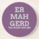Dorky and fun typography text design coaster featuring a word from the popular meme of Ermahgerd. Ermahgerd is a very obnoxious and lisped way to say "Oh my God!" Customize with your own text and background color. Use an ermahgerd translator such as this one [http://ermahgerd.jmillerdesign.com/#!/translate] to make your personalized text even more silly!