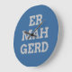 Dorky and fun typography text design clock featuring a word from the popular meme of Ermahgerd. Ermahgerd is a very obnoxious and lisped way to say "Oh my God!" Customize with your own text and background color. Use an ermahgerd translator such as this one [http://ermahgerd.jmillerdesign.com/#!/translate] to make your personalized text even more silly!