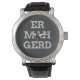 Dorky and fun typography text design watch featuring a word from the popular meme of Ermahgerd. Ermahgerd is a very obnoxious and lisped way to say "Oh my God!" Customize with your own text and background color. Use an ermahgerd translator such as this one [http://ermahgerd.jmillerdesign.com/#!/translate] to make your personalized text even more silly!