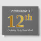This guest book design features the ordinal number "12th" with a faux/imitation gold-like appearance. It also features a customized name, and a gray (grey) colored background. It could be used at a birthday party for somebody who is celebrating their twelfth birthday. [~Z0000193]