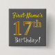 Gray, Faux Gold 17th Birthday, With Custom Name Pinback Button
