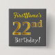 Gray, Faux Gold 22nd Birthday, With Custom Name Button