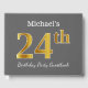 This guest book design features the ordinal number "24th" with a faux/imitation gold-like appearance. It also features a personalized name, and a gray (grey) colored background. It could be used at a birthday party for somebody who is celebrating their twenty fourth birthday. [~Z0000193]