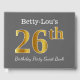 This guest book design features the ordinal number "26th" with a faux/imitation gold-like appearance. It also features a personalized name, and a gray (grey) colored background. It could be used at a birthday party for somebody who is celebrating their twenty sixth birthday. [~Z0000193]