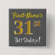 Gray, Faux Gold 31st Birthday, With Custom Name Button