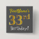 Gray, Faux Gold 33rd Birthday, With Custom Name Button