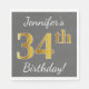 Gray, Faux Gold 34th Birthday + Custom Name Napkins