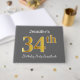 This guest book design features the ordinal number "34th" with a faux/imitation gold-like appearance. It also features a custom name, and a gray (grey) colored background. It could be used at a birthday party for somebody who is celebrating their thirty fourth birthday. [~Z0000193]