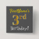 Gray, Faux Gold 3rd Birthday, With Custom Name Pinback Button