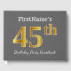This guest book design features the ordinal number "45th" with a faux/imitation gold-like appearance. It also features a personalized name, and a gray (grey) colored background. It could be used at a birthday party for somebody who is celebrating their forty fifth birthday. [~Z0000193]
