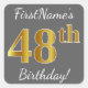 Gray, Faux Gold 48th Birthday + Custom Name Square Sticker
