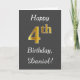 This simple birthday card design features the message "Happy 4th Birthday", with the "4th" having a faux gold-like appearance. It also features a custom name, and a gray background. It could be given to somebody who is celebrating their fourth birthday.