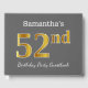 This guest book design features the ordinal number "52nd" with a faux/imitation gold-like appearance. It also features a custom name, and a gray (grey) colored background. It could be used at a birthday party for somebody who is celebrating their fifty second birthday. [~Z0000193]