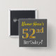 Gray, Faux Gold 52nd Birthday, With Custom Name Button