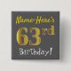 Gray, Faux Gold 63rd Birthday, With Custom Name Button