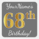 Gray, Faux Gold 68th Birthday + Custom Name Square Sticker