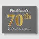 This guest book design features the ordinal number "70th" with a faux/imitation gold-like appearance. It also features a customized name, and a gray (grey) colored background. It could be used at a birthday party for somebody who is celebrating their seventieth birthday. [~Z0000193]