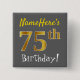 Gray, Faux Gold 75th Birthday, With Custom Name Pinback Button