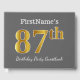 This guest book design features the ordinal number "87th" with a faux/imitation gold-like appearance. It also features a customized name, and a gray (grey) colored background. It could be used at a birthday party for somebody who is celebrating their eighty seventh birthday. [~Z0000193]