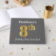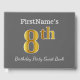 This guest book design features the ordinal number "8th" with a faux/imitation gold-like appearance. It also features a personalized name, and a gray (grey) colored background. It could be used at a birthday party for somebody who is celebrating their eighth birthday. [~Z0000193]