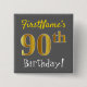 Gray, Faux Gold 90th Birthday, With Custom Name Pinback Button
