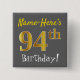 Gray, Faux Gold 94th Birthday, With Custom Name Button