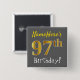 Gray, Faux Gold 97th Birthday, With Custom Name Button