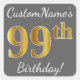 Gray, Faux Gold 99th Birthday + Custom Name Square Sticker