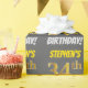 This wrapping paper design features a message like "STEPHEN’S 34th BIRTHDAY!", with the "34th" having a faux/imitation gold-like color appearance, and with the name and "BIRTHDAY" in a fun, bold font. The name can be customized, and the background is colored gray (grey). Wrapping paper like this could perhaps be used when wrapping birthday gifts being given to somebody in celebration of their thirty fourth birthday. [~Z0000211]