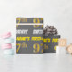 This wrapping paper design features a message like "FIRST-NAME’S 97th BIRTHDAY!", with the "97th" having a faux/imitation gold-like color appearance, and with the name and "BIRTHDAY" in a fun, bold font. The name can be personalized, and the background is colored gray (grey). Wrapping paper like this could perhaps be used when wrapping birthday gifts being given to somebody in celebration of their ninety seventh birthday. [~Z0000211]