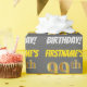 This wrapping paper design features a message like "FIRSTNAME’S 99th BIRTHDAY!", with the "99th" having a faux/imitation gold-like color appearance, and with the name and "BIRTHDAY" in a fun, bold font. The name can be customized, and the background is colored gray (grey). Wrapping paper like this could perhaps be used when wrapping birthday gifts being given to somebody in celebration of their ninety ninth birthday. [~Z0000211]