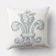 This is an attractive throw pillow for your home. It has a fancy vintage gray fleur de lis on a white pillow.