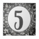 An intricate gray floral design frames a white oval space with a number template. Numbers can be used horizontally or stacked vertically. The edges of the tiles are slightly darkened to lend a dimensional look and add distinction to each tile. Use the edit menu to change numbers.